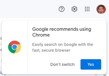 Duckduckgo browser is my primary browser. Firefox, Safari, Chromium and Google Chrome come behind in that order. While using Gmail in other browsers (except DDG - DuckDuckGo), Google has worked just fine. However, ever since I migrated to DDG, Google started showing the following pop-up inside Gmail.